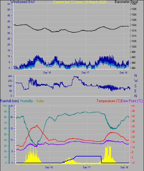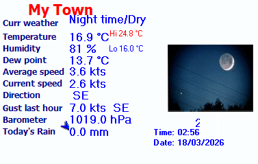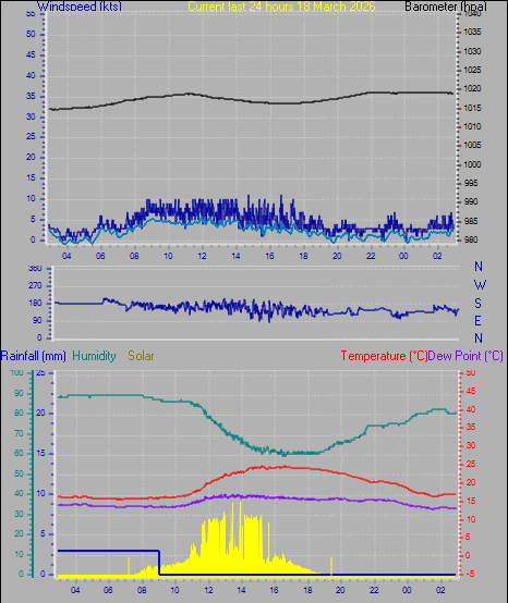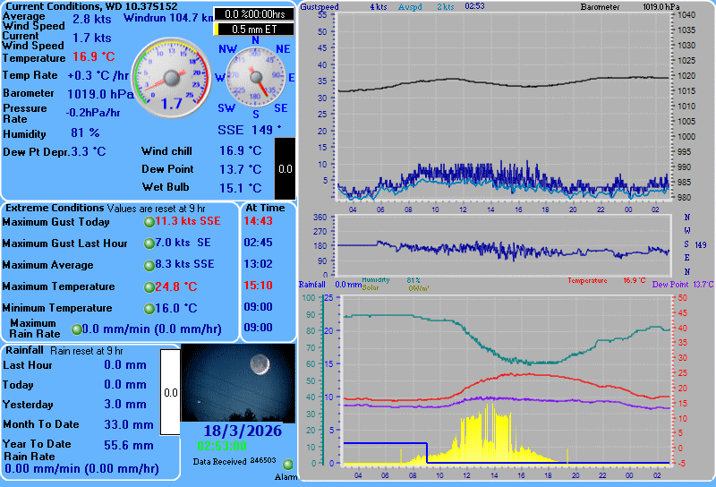 | Yesterdays rainfall | 3.0 mm | DewPoint | 13.5°C (Wet Bulb :15.0°C ) |